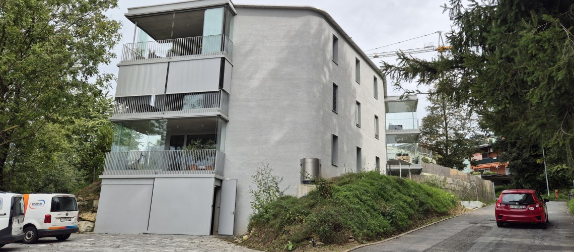 Das Gebäude in Pregassona ist das Erste des Tessins, das gleichzeitig nach Minergie-A-ECO, Minergie-P-ECO und SNBS 2.1 mit der Auszeichnung Silber zertifiziert wurde. Es handelt sich um ein Wohnobjekt, das 6 Wohnungen umfasst: drei 4-Zimmerwohnungen und drei 2-Zimmerwohnungen. Die zwei verschiedenen Wohnungsgrössen ermöglichen einen intergenerationalen Austausch. Die Gebäudeform ist bedingt durch die Grundstücksgrenzen und die Gegebenheiten des Geländes. Da das Gelände sehr abschüssig ist, wurden Stahlbetonwände als tragende Struktur gewählt.